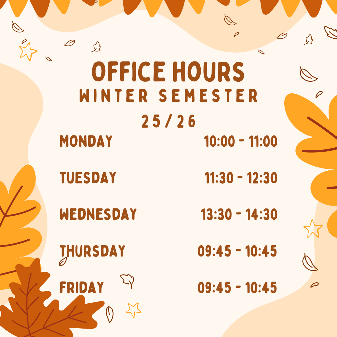 Our meetings take place every Wednesday* at 6.30 PM in R005 of the biology tower (building 30.43). At these meetings, we discuss various topics relevant to students. If you would like to drop by, it is best to come to the student council office shortly before the meeting starts. We will then go to the meeting room together.