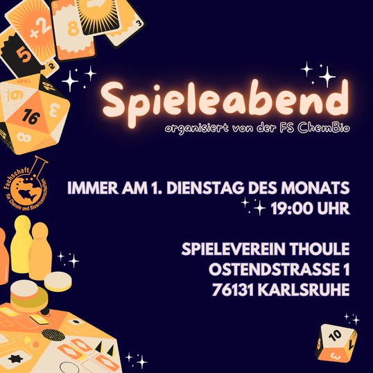 Jeden 1. Dienstag im Monat, 19 Uhr, findet unser Spieleabend in den Räumen des Spielevereins Thoule (Ostendstr. 1) statt.